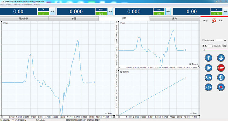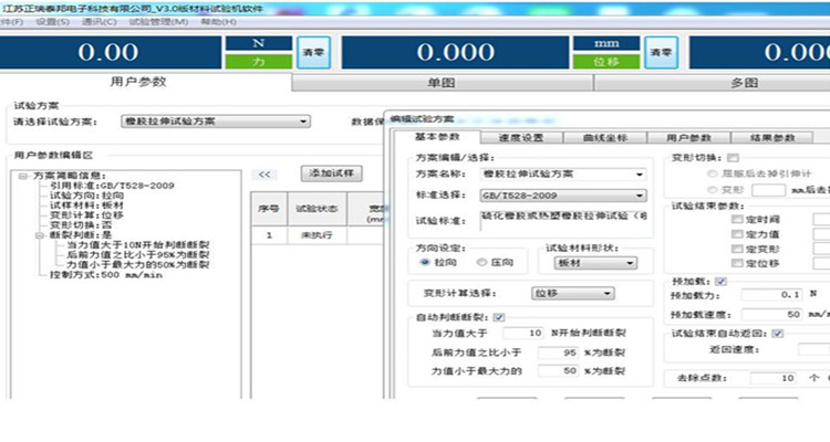 完全开放的试验方法编辑界面,力-时间、力-位移、位移-时间、抗拉强度-时间、伸长率-时间、应力-应变等曲线图可任意切换;自动求算拉力、抗拉强度、屈服强度、伸长率、弹性模量等指标,试验报告可导入Word或Excel,多次试验结果可同时展现,一张报表可展现多条试验曲线,便于用户对比。