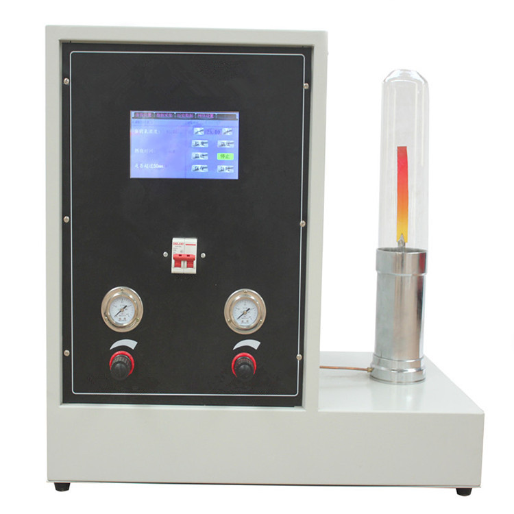 产品特点: JF-5型全自动氧指数仪采用全彩触摸屏控制,只需在触屏上设定氧浓度值,程序便会自动调节到氧浓度平衡并发出嘀的声音提示,免去了人工调节氧浓度的麻烦;采用闭环控制,测试当中氧浓度漂移程序自动调节回到目标值,大大提高了测试精度。